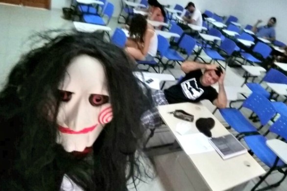 Professor viraliza após aplicar prova vestido de Jigsaw, dos ‘Jogos Mortais’ Professor dá aulas em curso de veterinária e aplicou prova final de outubro. Postagem foi feita em uma página na web nesta terça-feira (22). 25 de novembro de 2016